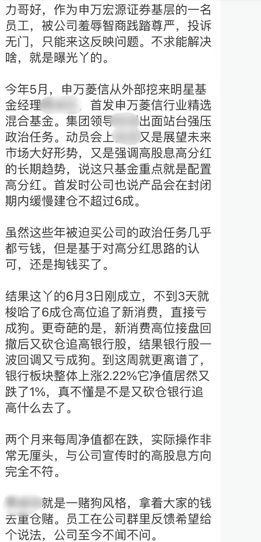 所以,这次券商渠道申万宏源的员工,才愤而爆料。