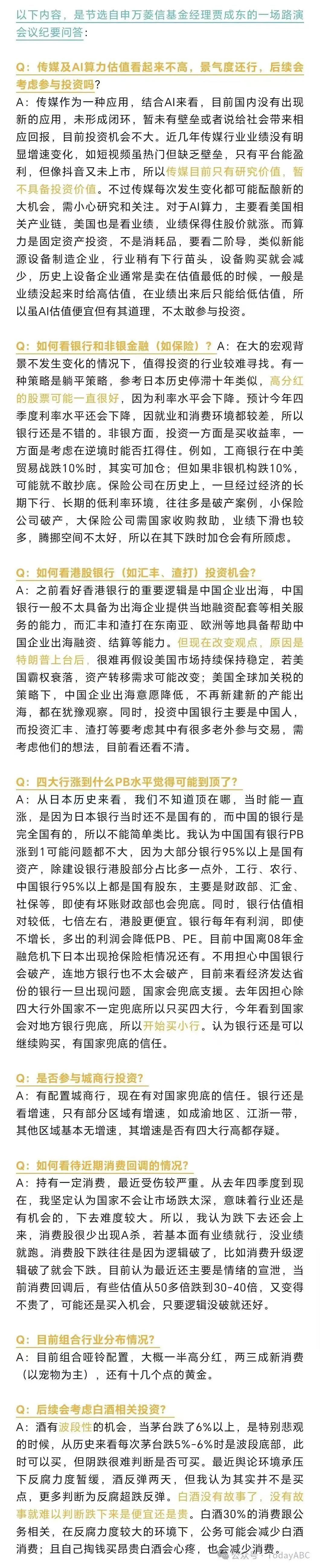 1)注意到市场对申万菱信行业精选基金的关注与期待。当前产品短期业绩虽未达预期,仍希望投资者将目光更多投向长期表现。